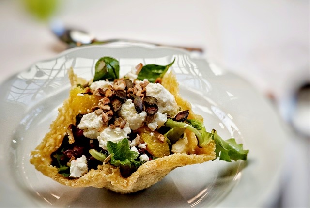 4. 접시에 야채를 먼저 담고, 그 위에 리코타치즈를 뿌립니다.