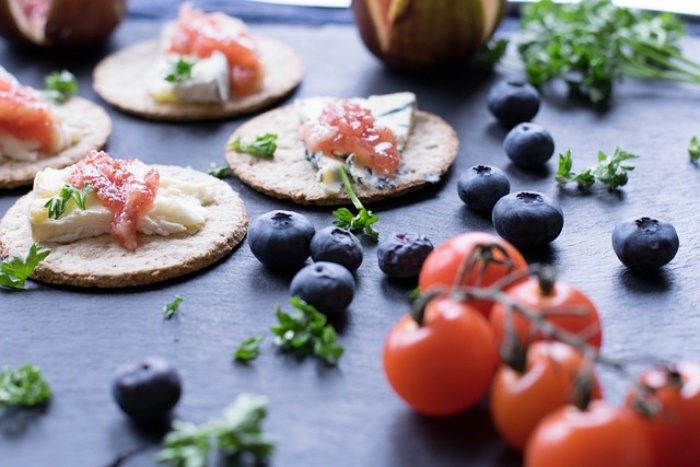 1. 크래커 위에 까망베르 치즈를 올려주세요.